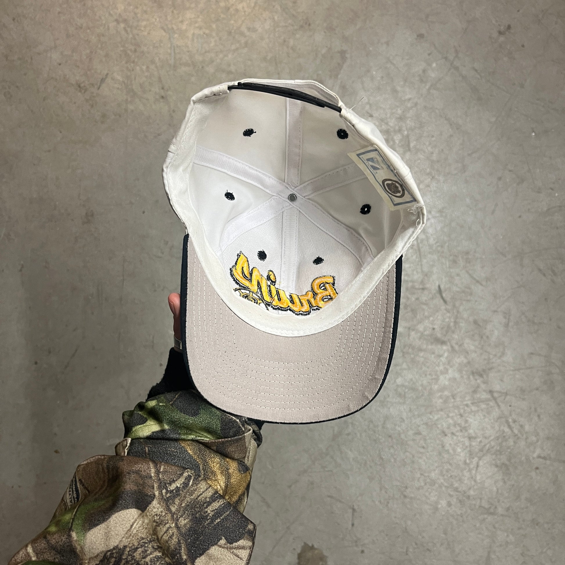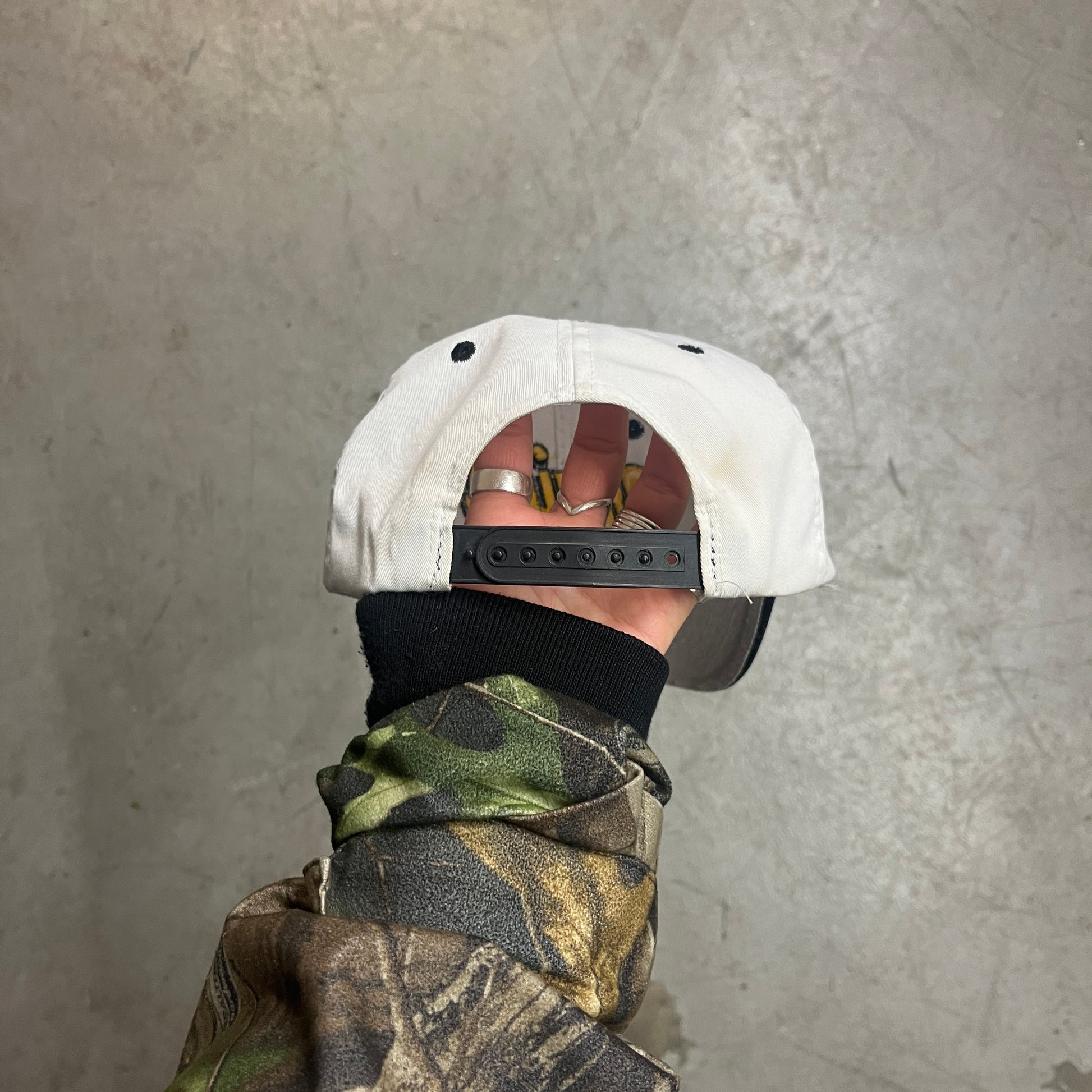 CONDITION: GOOD CONDITION, MINOR DISCOLOURING. SIZE: ADJUSTABLE SNAP-BACK, ONE SIZE FITS ALL.