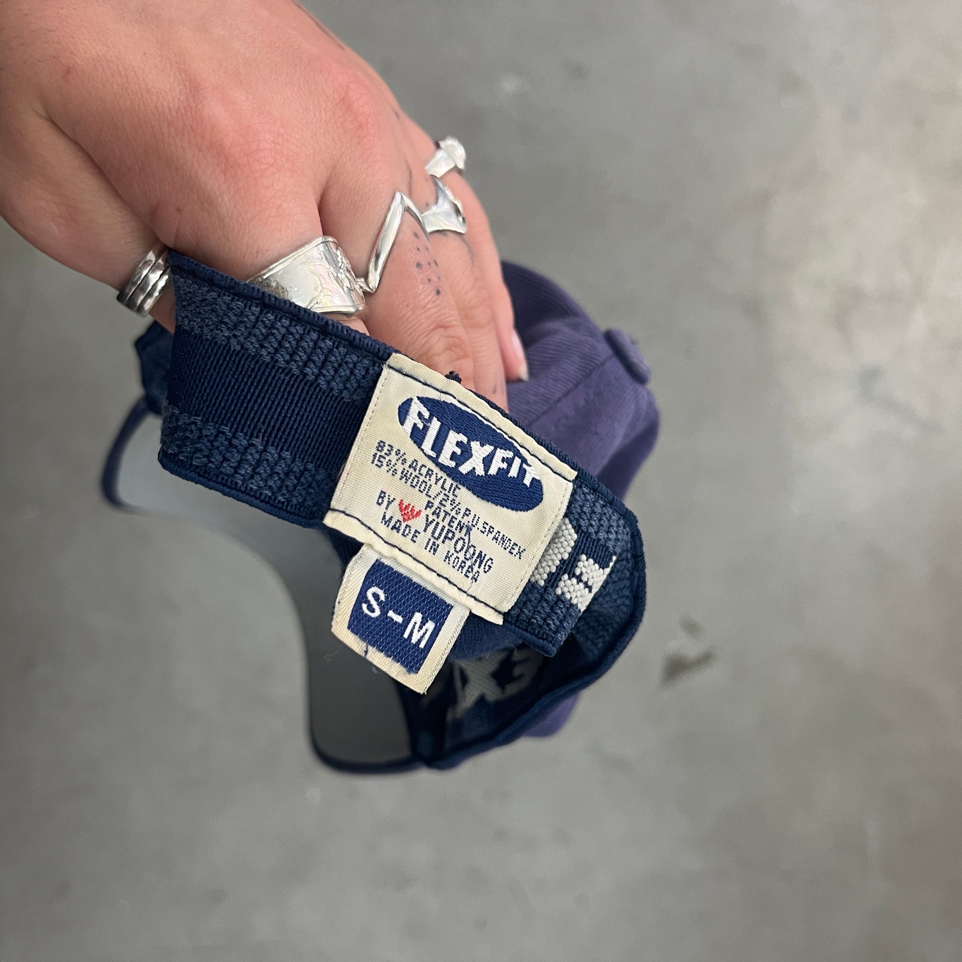 SIZE: FLEXFIT, LABEL STATES SIZE S-M (REFER TO THE MEASUREMENTS, SLIGHT STRETCH OUT DUE TO AGE / WEAR]